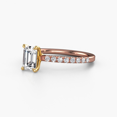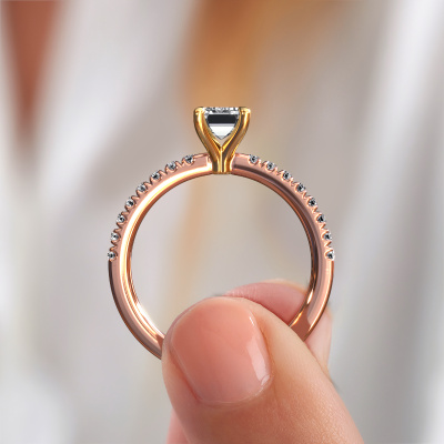 Der oben gezeigte Verlobungsring wird Crystal EME 2 genannt. Wir nennen das einen Solitär-Ring, denn er hat einen einzelnen Edelstein. Es ist ein 585 Roségold Verlobungsring, mit 0.90 crt smaragd schliff Diamant. Dieser exklusive Roségold Solitär-Ring mit exquisitem, smaragd schliff Diamant ist ein schöner Verlobungsring. Die offenen Krappen ermöglichen, dass Licht aus mehr Winkeln auf den Edelstein trifft. Der Ring besticht auch durch die hohe Positionierung des Edelsteins. Denn Diamant symbolisieren wahre Liebe und Reinheit und machen sie damit zum perfekten Geschenk für die Liebe Ihres Lebens. Das Symbol der ewigen Liebe ist das Herzstück dieses Solitär-Rings. Wie ein Diamant haben auch alle anderen Arten von Edelmetallen ihre eigenen, zugeschriebenen symbolischen Bedeutungen. Diese Pavé Solitär Verlobungsring können Sie selbst zusammenstellen in verschiedenen Edelmetall Kombinationen. Dieser hat die Kombination 585 Roségold mit Roségold. Jedes Schmuckstück wird von unseren Meister-Goldschmieden in unserem eigenen Studio für Sie gefertigt.Durch die Kombination modernster Technik mit uralter Handwerkskunst können wir alle Verlobungsringe in unserem eigenen Studio anfertigen. Jedes Schmuckstück wird auf Anfrage gefertigt. Das ist vorteilhaft, weil wir Ihnen dadurch einen Preis anbieten können, den Sie nirgendwo anders finden.Unser Team fügt unserer Online-Kollektion täglich neue Designs hinzu. Unsere Designer und Goldschmiede arbeiten zusammen, um das beste Design zu kreieren. Wir bemühen uns, eine vielfältige Kollektion von Schmuckstücken anzubieten. Vielleicht haben Sie ein bestimmtes Design im Sinn. Eines, dass Sie irgendwo gesehen haben. Gerne geben wir Ihnen eine kostenlose Beratung. Wir machen Ihnen ein Angebot, basierend auf einem fairen Preis/Leistungsverhältnis, das Sie verblüffen wird.Um es einfacher zu machen, bieten wir eine kostenlose 30-tägige Rücksendung.