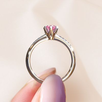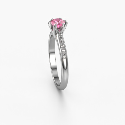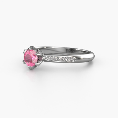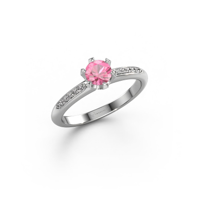 Der oben gezeigte Ring wird Tiffy 2 genannt. Es ist ein Pavé Solitär Ring, da er einen zentralen Edelstein und ein Band mit Pavé-Fassung hat. Dieser 14 Karat Weißgold ring ist mit einem 4.7 mm rund Pink Saphir-Mittelstein besetzt und das Band hat eine Pavé-Fassung mit Diamanten. Jedes Schmuckstück ist um Ihrem Finger Glanz zu verleihen. Jeder Ring wird von unseren Goldschmieden liebevoll von Hand gefertigt.Dieser traditionell Weißgold Pavé Solitär Verlobungsring mit Pavé-Fassung hat einen exquisiten, rund Pink Saphir als Mittelstein. Um den zentralen Stein noch mehr zu betonen, hat das Band eine Pavé-Fassung mit weiteren Diamanten. Durch die offenen Krappen kann das Licht aus mehreren Winkeln auf den Pink Saphir treffen und der Pink Saphir-Ring funkelt noch mehr. Das obere Foto zeigt die leidenschaftlich handgefertigten Details des Rings. Die hohe Positionierung der Mittelstein ist ein echter Blickfang. Der perfekte Verlobungsring für das Kronjuwel Ihres Lebens!Mit unserer modernen Technik können wir Schmuckstücke von höchster Qualität mit größter Sorgfalt für Sie entwerfen und anpassen. Unsere Verlobungsringe sind immer um 30 Prozent günstiger als bei anderen Juwelieren. Wir fertigen Verlobungsringe auf Bestellung, also müssen wir keine großen Lager unterhalten. Wenn Sie ein bestimmtes Budget haben, beraten wir Sie gerne entsprechend.Unsere Designer und Goldschmiede arbeiten jeden Tag zusammen und versuchen, neue Schmuckstücke zu kreieren. Vielleicht haben Sie irgendwo einen schönen, traditionell Verlobungsring gefunden, nach dem Ihr einzigartiger Ring gestaltet werden kann. Setzen Sie sich mit uns in Verbindung. Wir machen Ihnen ein Angebot, basierend auf einem fairen Preis/Leistungsverhältnis, das Sie begeistern wird.Um es einfacher zu machen, bieten wir eine kostenlose 30-tägige Rücksendung.