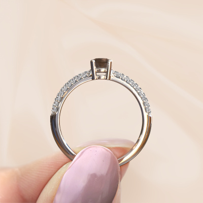 Der oben gezeigte Verlobungsring wird Marjan genannt. Wir nennen das einen Ring mit Pavé-Fassung. Die kleineren Steine des Rings befinden sich in einer geschlossenen Reihe, die für zusätzlichen Glanz sorgt. Dieser Ring aus Platin ist besetzt mit Rauchquarz 4.2 mm. Welche Emotion möchten Sie vermitteln, wenn Sie für sie auf die Knie gehen? Dieser Platin Verlobungsring ist mit atemberaubenden Rauchquarz besetzt, um Ihre ewige Liebe zu repräsentieren. Die Edelsteine werden sorgfältig von Hand ausgewählt und präzise von unserem erfahrenen Goldschmieden gesetzt. Die eindeutige Lichtreflexion auf dem Ring kann nur erfasst werden, wenn die Rauchquarz in perfekter Reihe stehen. Beim kunstvollen Schweißen und Polieren des Schmuckstücks wird der Lichteinfall ständig überwacht, bis der erfahrene Juwelier mit dem Ergebnis zufrieden ist. Ein Ring, der nur für Sie entworfen wurde, um Ihre Liebste so hell wie einen Rauchquarz erstrahlen zu lassen. Weil es nur eine spezielle Person gibt, die einen so einzigartigen Ring tragen kann! Mit diesem bedeutungsvollen Kunstwerk, dem Symbol der Unendlichkeit, beweisen Sie Ihre unsterbliche Liebe zu ihr und dass Sie den Rest Ihres Lebens mit niemand anderem teilen wollen. Wie kann sie da widerstehen? Jedes Schmuckstück wird nur für Sie persönlich hergestellt, mit Liebe zum Detail und Design.Mit unserer modernen Technik können wir Schmuckstücke von höchster Qualität mit größter Sorgfalt für Sie entwerfen und anpassen. Unsere Verlobungsringe sind immer um 30 Prozent günstiger als bei anderen Juwelieren. Wir fertigen Verlobungsringe auf Bestellung, also müssen wir keine großen Lager unterhalten. Wenn Sie ein bestimmtes Budget haben, beraten wir Sie gerne entsprechend.Haben Sie irgendwo einen bestimmten Verlobungsring gefunden, den Sie Ihrem Liebsten schenken möchten? Sie können uns gerne sagen, was Sie wollen und wir werden Ihr Design in einen Einzigartigen exklusive Verlobungsring verwandeln. Sie können die Entwicklungen Ihres Ringdesigns verfolgen, da wir 3D-Zeichnungen verwenden. Das gibt Ihnen eine realistische Vorschau, wie Ihr Design aussehen wird. Sie können auch einen Dummy vorbestellen. Ein Dummy ist ein Kunststoffring, der nach Ihrem Ringdesign gestaltet werden kann. Sie können ihn anprobieren und prüfen, ob seine Breite und Größe für Sie geeignet sind. Wir senden Ihnen gerne ein unverbindliches Angebot zu einem fairen Preis/Leistungsverhältnis. Sie werden in Anbetracht der Qualität des Rings und der Edelsteine überrascht sein.Um es einfacher zu machen, bieten wir eine kostenlose 30-tägige Rücksendung.