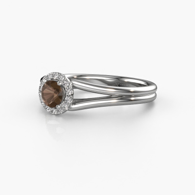 Der oben gezeigte Verlobungsring wird Verla rnd 1 genannt. Es ist ein Halo Ring, da er einen zentralen Edelstein und ein Band mit Pavé-Fassung hat. Der Platin ring ist mit einem 4.7 mm rund Rauchquarz-Mittelstein besetzt und um ihn herum eine Pavé-Fassung mit Diamanten. Was diesen klassische, Platin Halo Ring besonders macht, sind die kleineren Steine, die den zentralen Stein umschließen. Dieser wunderschöne Verlobungsring wird als Halo Ring bezeichnet, da die kleineren Edelsteine dem zentralen Stein einen Lichthof geben. Damit die kleineren Steine den Mittelstein verstärken, müssen sie so platziert werden, dass keine Lichteinflüsse auftreten. Und hier kommen unsere erfahrenen Goldschmiede ins Spiel. Jeder einzelne Stein wird sorgfältig von Hand in den Ring gesetzt. Während der Herstellung wird der Lichteinfall ständig überprüft. So können wir sicherstellen, dass der spezielle Lichtkranz noch sichtbar ist. Am Ende erhalten Sie einen einzigartigen Verlobungsring mit einem Rauchquarz Ihrer Wahl in der Mitte. Sie können sich die Wirkung eines solchen Ringes vorstellen, wenn Sie ihn an ihrem besonderen Tag für sie zum Leuchten bringen. Durch die Kombination modernster Technik mit uralter Handwerkskunst können wir alle Verlobungsringe in unserem eigenen Studio anfertigen. Jedes Schmuckstück wird auf Anfrage gefertigt. Das ist vorteilhaft, weil wir Ihnen dadurch einen Preis anbieten können, den Sie nirgendwo anders finden.Unser Team fügt unserer Online-Kollektion täglich neue Designs hinzu. Unsere Designer und Goldschmiede arbeiten zusammen, um das beste Design zu kreieren. Wir bemühen uns, eine vielfältige Kollektion von Schmuckstücken anzubieten. Vielleicht haben Sie ein bestimmtes Design im Sinn. Eines, dass Sie irgendwo gesehen haben. Gerne geben wir Ihnen eine kostenlose Beratung. Wir machen Ihnen ein Angebot, basierend auf einem fairen Preis/Leistungsverhältnis, das Sie verblüffen wird.Um es einfacher zu machen, bieten wir eine kostenlose 30-tägige Rücksendung.