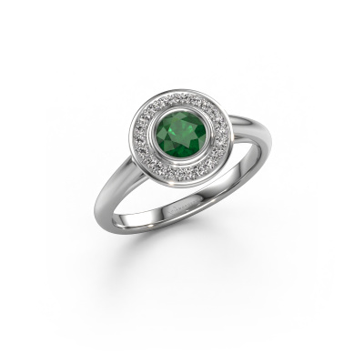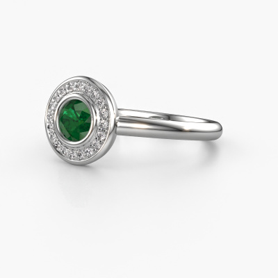 Der oben gezeigte Verlobungsring wird Noud 1 RND genannt. Es ist ein Halo Ring, da er einen zentralen Edelstein und ein Band mit Pavé-Fassung hat. Der Platin ring ist mit einem 4.7 mm rund Smaragd-Mittelstein besetzt und um ihn herum eine Pavé-Fassung mit Diamanten. Was diesen traditionell, Platin Halo Ring besonders macht, sind die kleineren Steine, die den zentralen Stein umschließen. Dieser wunderschöne Verlobungsring wird als Halo Ring bezeichnet, da die kleineren Edelsteine dem zentralen Stein einen Lichthof geben. Damit die kleineren Steine den Mittelstein verstärken, müssen sie so platziert werden, dass keine Lichteinflüsse auftreten. Und hier kommen unsere erfahrenen Goldschmiede ins Spiel. Jeder einzelne Stein wird sorgfältig von Hand in den Ring gesetzt. Während der Herstellung wird der Lichteinfall ständig überprüft. So können wir sicherstellen, dass der spezielle Lichtkranz noch sichtbar ist. Am Ende erhalten Sie einen einzigartigen Verlobungsring mit einem Smaragd Ihrer Wahl in der Mitte. Sie können sich die Wirkung eines solchen Ringes vorstellen, wenn Sie ihn an ihrem besonderen Tag für sie zum Leuchten bringen. Durch die Kombination modernster Technik mit uralter Handwerkskunst können wir alle Verlobungsringe in unserem eigenen Studio anfertigen. Jedes Schmuckstück wird auf Anfrage gefertigt. Das ist vorteilhaft, weil wir Ihnen dadurch einen Preis anbieten können, den Sie nirgendwo anders finden.Haben Sie einen bestimmten Ring im Sinn? Eines, dass Sie irgendwo gesehen haben. Bitte zögern Sie nicht, uns zu sagen, was Sie wollen und wir werden Ihr Design in einen Einzigartigen Verlobungsring verwandeln. Sie können die Entwicklungen Ihres Ringdesigns verfolgen, da wir 3D-Zeichnungen verwenden. Das gibt Ihnen eine realistische Vorschau Ihres Designs. Wir senden Ihnen gerne ein unverbindliches Angebot zu einem fairen Preis/Leistungsverhältnis. Es wird Sie erstaunen.Um es einfacher zu machen, bieten wir eine kostenlose 30-tägige Rücksendung.