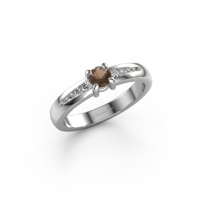 Der oben gezeigte Platin Verlobungsring wird Zohra genannt. Es ist ein Pavé Solitär Ring, da er einen zentralen Edelstein und ein Band mit Pavé-Fassung hat. Der moderne Pavé Solitär Verlobungsring ist in der Kombination Platin mit Platin und ist mit einem rund 4 mm Rauchquarz-Mittelstein besetzt und das Band hat eine Pavé-Fassung mit Diamanten. Jedes Schmuckstück wird von unseren Meister-Goldschmieden in unserem eigenen Studio für Sie gefertigt. Um den zentralen Stein noch mehr zu betonen, hat das Band eine Pavé-Fassung mit weiteren Rauchquarz. Durch die offenen Krappen kann das Licht aus mehreren Winkeln auf den Rauchquarz treffen und der Rauchquarz-Ring funkelt noch mehr. Das obere Foto zeigt die leidenschaftlich handgefertigten Details des Rings. Die hohe Positionierung der Mittelstein ist ein echter Blickfang. Der perfekte Verlobungsring für das Kronjuwel Ihres Lebens!Da wir unsere eigenen Ringe entwerfen und liefern, können wir Ihnen einen Verlobungsring zu einem Preis anbieten, den Sie nirgendwo anders finden. Ein Ring wird auf Bestellung angefertigt, wodurch kein überschüssiges Material anfällt. So können wir Ihnen ein gutes Angebot zum besten Preis machen. Wir verstehen, dass es sich riskant anfühlt, Ihren Verlobungsring online zu kaufen. Jedoch helfen wir Ihnen gerne beim Designprozess unter Berücksichtigung Ihres Budgets.Unser Team fügt unserer Online-Kollektion täglich neue Designs hinzu. Unsere Designer und Goldschmiede arbeiten zusammen, um das beste Design zu kreieren. Wir bemühen uns, eine vielfältige Kollektion von Schmuckstücken anzubieten. Vielleicht haben Sie ein bestimmtes Design im Sinn. Eines, dass Sie irgendwo gesehen haben. Gerne geben wir Ihnen eine kostenlose Beratung. Wir machen Ihnen ein Angebot, basierend auf einem fairen Preis/Leistungsverhältnis, das Sie verblüffen wird.Um es einfacher zu machen, bieten wir eine kostenlose 30-tägige Rücksendung.