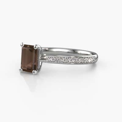 Der oben gezeigte Platin Verlobungsring wird Mignon eme 2 genannt. Es ist ein Pavé Solitär Ring, da er einen zentralen Edelstein und ein Band mit Pavé-Fassung hat. Der exklusive Pavé Solitär Verlobungsring ist in der Kombination Platin mit Platin und ist mit einem smaragd schliff 7x5 mm Rauchquarz-Mittelstein besetzt und das Band hat eine Pavé-Fassung mit Lab grown Diamant. Jedes Schmuckstück wird nur für Sie persönlich hergestellt, mit Liebe zum Detail und Design. Um den zentralen Stein noch mehr zu betonen, hat das Band eine Pavé-Fassung mit weiteren Rauchquarz. Durch die offenen Krappen kann das Licht aus mehreren Winkeln auf den Rauchquarz treffen und der Rauchquarz-Ring funkelt noch mehr. Das obere Foto zeigt die leidenschaftlich handgefertigten Details des Rings. Die hohe Positionierung der Mittelstein ist ein echter Blickfang. Der perfekte Verlobungsring für das Kronjuwel Ihres Lebens!Haben Sie ein bestimmtes Budget? Sie können uns gerne kontaktieren, damit wir Ihre Optionen besprechen können. Wir bieten unsere Verlobungsringe zum garantiert besten Preis, denn wir fertigen sie auf Bestellung. Solche Preise finden Sie nirgendwo anders!Haben Sie einen bestimmten Ring im Sinn? Eines, dass Sie irgendwo gesehen haben. Bitte zögern Sie nicht, uns zu sagen, was Sie wollen und wir werden Ihr Design in einen Einzigartigen Verlobungsring verwandeln. Sie können die Entwicklungen Ihres Ringdesigns verfolgen, da wir 3D-Zeichnungen verwenden. Das gibt Ihnen eine realistische Vorschau Ihres Designs. Wir senden Ihnen gerne ein unverbindliches Angebot zu einem fairen Preis/Leistungsverhältnis. Es wird Sie erstaunen.Um es einfacher zu machen, bieten wir eine kostenlose 30-tägige Rücksendung.