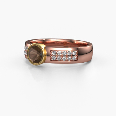 Der oben gezeigte Roségold Verlobungsring wird Ise 3 genannt. Es ist ein Pavé Solitär Ring, da er einen zentralen Edelstein und ein Band mit Pavé-Fassung hat. Der moderne Pavé Solitär Verlobungsring ist in der Kombination 14 Karat Roségold mit Gold und ist mit einem rund 4.7 mm Rauchquarz-Mittelstein besetzt und das Band hat eine Pavé-Fassung mit Diamanten. Jedes Schmuckstück wird von unseren Meister-Goldschmieden in unserem eigenen Studio für Sie gefertigt. Um den zentralen Stein noch mehr zu betonen, hat das Band eine Pavé-Fassung mit weiteren Rauchquarz. Durch die offenen Krappen kann das Licht aus mehreren Winkeln auf den Rauchquarz treffen und der Rauchquarz-Ring funkelt noch mehr. Das obere Foto zeigt die leidenschaftlich handgefertigten Details des Rings. Die hohe Positionierung der Mittelstein ist ein echter Blickfang. Der perfekte Verlobungsring für das Kronjuwel Ihres Lebens!Da wir unsere eigenen Ringe entwerfen und liefern, können wir Ihnen einen Verlobungsring zu einem Preis anbieten, den Sie nirgendwo anders finden. Ein Ring wird auf Bestellung angefertigt, wodurch kein überschüssiges Material anfällt. So können wir Ihnen ein gutes Angebot zum besten Preis machen. Wir verstehen, dass es sich riskant anfühlt, Ihren Verlobungsring online zu kaufen. Jedoch helfen wir Ihnen gerne beim Designprozess unter Berücksichtigung Ihres Budgets.Unser Team fügt unserer Online-Kollektion täglich neue Designs hinzu. Unsere Designer und Goldschmiede arbeiten zusammen, um das beste Design zu kreieren. Wir bemühen uns, eine vielfältige Kollektion von Schmuckstücken anzubieten. Vielleicht haben Sie ein bestimmtes Design im Sinn. Eines, dass Sie irgendwo gesehen haben. Gerne geben wir Ihnen eine kostenlose Beratung. Wir machen Ihnen ein Angebot, basierend auf einem fairen Preis/Leistungsverhältnis, das Sie verblüffen wird.Um es einfacher zu machen, bieten wir eine kostenlose 30-tägige Rücksendung.