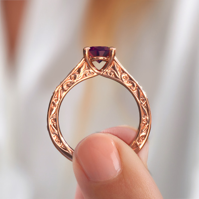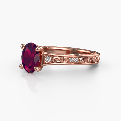 Der oben gezeigte Ring wird Mallory ovl genannt. Es ist ein Pavé Solitär Ring, da er einen zentralen Edelstein und ein Band mit Pavé-Fassung hat. Dieser 14 Karat Roségold ring ist mit einem 8x6 mm oval Rhodolit-Mittelstein besetzt und das Band hat eine Pavé-Fassung mit Lab grown Diamant. Jedes Schmuckstück wird hergestellt mit Leidenschaft und Liebe, von einem unserer Meister-Goldschmiede.Dieser traditionell Roségold Pavé Solitär Verlobungsring mit Pavé-Fassung hat einen exquisiten, oval Rhodolit als Mittelstein. Um den zentralen Stein noch mehr zu betonen, hat das Band eine Pavé-Fassung mit weiteren Lab grown Diamant. Durch die offenen Krappen kann das Licht aus mehreren Winkeln auf den Rhodolit treffen und der Rhodolit-Ring funkelt noch mehr. Das obere Foto zeigt die leidenschaftlich handgefertigten Details des Rings. Die hohe Positionierung der Mittelstein ist ein echter Blickfang. Der perfekte Verlobungsring für das Kronjuwel Ihres Lebens!Haben Sie ein bestimmtes Budget? Sie können uns gerne kontaktieren, damit wir Ihre Optionen besprechen können. Wir bieten unsere Verlobungsringe zum garantiert besten Preis, denn wir fertigen sie auf Bestellung. Solche Preise finden Sie nirgendwo anders!Unser Team fügt unserer Online-Kollektion täglich neue Designs hinzu. Unsere Designer und Goldschmiede arbeiten zusammen, um das beste Design zu kreieren. Wir bemühen uns, eine vielfältige Kollektion von Schmuckstücken anzubieten. Vielleicht haben Sie ein bestimmtes Design im Sinn. Eines, dass Sie irgendwo gesehen haben. Gerne geben wir Ihnen eine kostenlose Beratung. Wir machen Ihnen ein Angebot, basierend auf einem fairen Preis/Leistungsverhältnis, das Sie verblüffen wird.Um es einfacher zu machen, bieten wir eine kostenlose 30-tägige Rücksendung.