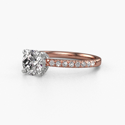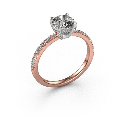 Der oben gezeigte Roségold Verlobungsring wird Saskia rnd 1 genannt. Es ist ein Pavé Solitär Ring, da er einen zentralen Edelstein und ein Band mit Pavé-Fassung hat. Der exklusive Pavé Solitär Verlobungsring ist in der Kombination 14 Karat Roségold mit Weißgold und ist mit einem rund 1.00 crt Lab-grown Diamant-Mittelstein besetzt und das Band hat eine Pavé-Fassung mit Lab grown Diamant. Jedes Schmuckstück wird hergestellt mit Leidenschaft und Liebe, von einem unserer Meister-Goldschmiede. Um den zentralen Stein noch mehr zu betonen, hat das Band eine Pavé-Fassung mit weiteren Lab-grown Diamant. Durch die offenen Krappen kann das Licht aus mehreren Winkeln auf den Lab-grown Diamant treffen und der Lab-grown Diamant-Ring funkelt noch mehr. Das obere Foto zeigt die leidenschaftlich handgefertigten Details des Rings. Die hohe Positionierung der Mittelstein ist ein echter Blickfang. Der perfekte Verlobungsring für das Kronjuwel Ihres Lebens!Durch die Kombination modernster Technik mit uralter Handwerkskunst können wir alle Verlobungsringe in unserem eigenen Studio anfertigen. Jedes Schmuckstück wird auf Anfrage gefertigt. Das ist vorteilhaft, weil wir Ihnen dadurch einen Preis anbieten können, den Sie nirgendwo anders finden.Haben Sie einen bestimmten Ring im Sinn? Eines, dass Sie irgendwo gesehen haben. Bitte zögern Sie nicht, uns zu sagen, was Sie wollen und wir werden Ihr Design in einen Einzigartigen Verlobungsring verwandeln. Sie können die Entwicklungen Ihres Ringdesigns verfolgen, da wir 3D-Zeichnungen verwenden. Das gibt Ihnen eine realistische Vorschau Ihres Designs. Wir senden Ihnen gerne ein unverbindliches Angebot zu einem fairen Preis/Leistungsverhältnis. Es wird Sie erstaunen.Um es einfacher zu machen, bieten wir eine kostenlose 30-tägige Rücksendung.