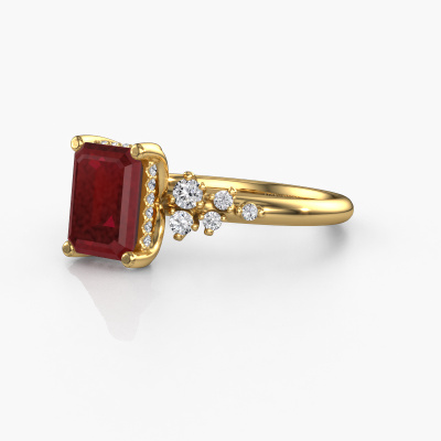 Der oben gezeigte Ring wird Emma EME genannt. Es ist ein Pavé Solitär Ring, da er einen zentralen Edelstein und ein Band mit Pavé-Fassung hat. Dieser 585 Gold ring ist mit einem 8x6 mm smaragd schliff Rubin-Mittelstein besetzt und das Band hat eine Pavé-Fassung mit Lab grown Diamant. Jedes Schmuckstück wird hergestellt mit Leidenschaft und Liebe, von einem unserer Meister-Goldschmiede.Dieser Fantasie Gold Pavé Solitär Verlobungsring mit Pavé-Fassung hat einen exquisiten, smaragd schliff Rubin als Mittelstein. Um den zentralen Stein noch mehr zu betonen, hat das Band eine Pavé-Fassung mit weiteren Lab grown Diamant. Durch die offenen Krappen kann das Licht aus mehreren Winkeln auf den Rubin treffen und der Rubin-Ring funkelt noch mehr. Das obere Foto zeigt die leidenschaftlich handgefertigten Details des Rings. Die hohe Positionierung der Mittelstein ist ein echter Blickfang. Der perfekte Verlobungsring für das Kronjuwel Ihres Lebens!Nach Erhalt Ihrer Bestellung beginnen unsere Goldschmiede mit Leidenschaft den kreativen Prozess und fertigen Ihren Verlobungsring in unserem eigenen Studio. Da wir keine großen Lager haben, werden diese Kosten nicht an Sie weitergegeben. Unsere Preisgestaltung ist der Beweis dafür! Wir bieten Schmuck zum niedrigsten Preis, garantiert.Unser Team fügt unserer Online-Kollektion täglich neue Designs hinzu. Unsere Designer und Goldschmiede arbeiten zusammen, um das beste Design zu kreieren. Wir bemühen uns, eine vielfältige Kollektion von Schmuckstücken anzubieten. Vielleicht haben Sie ein bestimmtes Design im Sinn. Eines, dass Sie irgendwo gesehen haben. Gerne geben wir Ihnen eine kostenlose Beratung. Wir machen Ihnen ein Angebot, basierend auf einem fairen Preis/Leistungsverhältnis, das Sie verblüffen wird.Um es einfacher zu machen, bieten wir eine kostenlose 30-tägige Rücksendung.