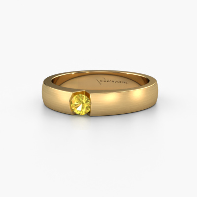Dieser Verlobungsring aus 14 Karat Gold mit 3.4 mm Gelb Saphir heißt Theresia. Die Spann Fassung macht ihn zu einem besonderen Verlobungsring, weil sie den Gelb Saphir betont. Unser erfahrener Goldschmiede verwendet spezielle Techniken, um den Gelb Saphir in diesen Gold Ring zu setzen. Mit diesen Techniken wird das Licht frei reflektiert. Das verleiht dem Ring maximalen Glanz und eine glamouröse Erscheinung. Ein wahres Kunstwerk! Das Endprodukt ist ein einzigartiger Ring mit einer trendigen Erscheinung, der von unserem erfahrenen Juwelier leidenschaftlich in Handarbeit gefertigt wird. Ein einzigartiger Ring, entworfen für die Liebe Ihres Lebens. Wenn Sie diesen Ring wählen, empfehlen wir Ihnen einen Breiten Edelstein wie einen Diamant oder Saphir. Der Ring muss während der Herstellung viel Druck aushalten können. Jedes Schmuckstück wird von unseren Meister-Goldschmieden in unserem eigenen Studio für Sie gefertigt.Mit unserer modernen Technik können wir Schmuckstücke von höchster Qualität mit größter Sorgfalt für Sie entwerfen und anpassen. Unsere Verlobungsringe sind immer um 30 Prozent günstiger als bei anderen Juwelieren. Wir fertigen Verlobungsringe auf Bestellung, also müssen wir keine großen Lager unterhalten. Wenn Sie ein bestimmtes Budget haben, beraten wir Sie gerne entsprechend.Verschiedene Arten von neuen Ringen werden täglich von unserem Team angefertigt. Vielleicht haben Sie irgendwo einen Solitär Verlobungsring gefunden. Einen, den Sie Ihrem Liebsten schenken möchten. Bitte zögern Sie nicht, unseren Schmuckdesignern Ihre Gedanken und Ihr Design zu zeigen. Wir würden gerne Ihr Design in einen moderne Verlobungsring verwandeln. Sie können die Entwicklungen Ihres Ringdesigns verfolgen, da wir sehr detaillierte 3D-Zeichnungen verwenden. Darüber hinaus können Sie einen Dummy des Designs bestellen. Ein Dummy ist ein Kunststoffring, der nach Ihrem Ringdesign gestaltet werden kann. Sie können ihn anprobieren und prüfen, ob der Verlobungsring Ihren Vorstellungen entspricht. Wir senden Ihnen gerne ein unverbindliches Angebot zu einem fairen Preis/Leistungsverhältnis. Das Angebot wird Sie angesichts der Qualität des Rings und der Edelsteine verblüffen.Um es einfacher zu machen, bieten wir eine kostenlose 30-tägige Rücksendung.