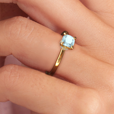 Der oben gezeigte Verlobungsring wird Crystal CUS 3 genannt. Wir nennen das einen Solitär-Ring, denn er hat einen einzelnen Edelstein. Es ist ein 14 Karat Gold Verlobungsring, mit 5 mm cussion Aquamarin. Dieser modische Gold Solitär-Ring mit exquisitem, cussion Aquamarin ist ein schöner Verlobungsring. Die offenen Krappen ermöglichen, dass Licht aus mehr Winkeln auf den Edelstein trifft. Der Ring besticht auch durch die hohe Positionierung des Edelsteins. Denn Aquamarin symbolisieren wahre Liebe und Reinheit und machen sie damit zum perfekten Geschenk für die Liebe Ihres Lebens. Das Symbol der ewigen Liebe ist das Herzstück dieses Solitär-Rings. Wie ein Aquamarin haben auch alle anderen Arten von Edelmetallen ihre eigenen, zugeschriebenen symbolischen Bedeutungen. Diese Solitär Verlobungsring können Sie selbst zusammenstellen in verschiedenen Edelmetall Kombinationen. Dieser hat die Kombination 14 Karat Gold mit Gold. Jedes Schmuckstück wird hergestellt von einem Team leidenschaftlicher Goldschmiede und Schmuckdesigner. Das wird Ihr Kronjuwel unbedingt zu einem Blickfang machen.Durch die Kombination modernster Technik mit uralter Handwerkskunst können wir alle Verlobungsringe in unserem eigenen Studio anfertigen. Jedes Schmuckstück wird auf Anfrage gefertigt. Das ist vorteilhaft, weil wir Ihnen dadurch einen Preis anbieten können, den Sie nirgendwo anders finden.Unsere Designer und Goldschmiede arbeiten jeden Tag zusammen und versuchen, neue Schmuckstücke zu kreieren. Vielleicht haben Sie irgendwo einen schönen, modische Verlobungsring gefunden, nach dem Ihr einzigartiger Ring gestaltet werden kann. Setzen Sie sich mit uns in Verbindung. Wir machen Ihnen ein Angebot, basierend auf einem fairen Preis/Leistungsverhältnis, das Sie begeistern wird.Um es einfacher zu machen, bieten wir eine kostenlose 30-tägige Rücksendung.