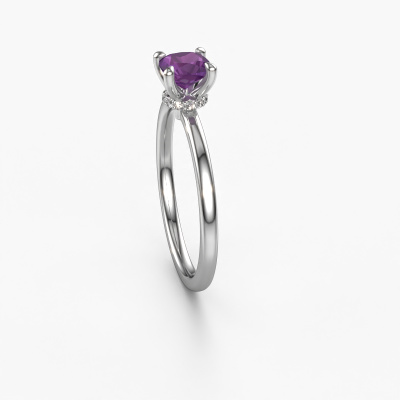Der oben gezeigte Verlobungsring wird Crystal CUS 3 genannt. Wir nennen das einen Solitär-Ring, denn er hat einen einzelnen Edelstein. Es ist ein Platin Verlobungsring, mit 5 mm cussion Amethyst. Dieser modische Platin Solitär-Ring mit exquisitem, cussion Amethyst ist ein schöner Verlobungsring. Die offenen Krappen ermöglichen, dass Licht aus mehr Winkeln auf den Edelstein trifft. Der Ring besticht auch durch die hohe Positionierung des Edelsteins. Denn Amethyst symbolisieren wahre Liebe und Reinheit und machen sie damit zum perfekten Geschenk für die Liebe Ihres Lebens. Das Symbol der ewigen Liebe ist das Herzstück dieses Solitär-Rings. Wie ein Amethyst haben auch alle anderen Arten von Edelmetallen ihre eigenen, zugeschriebenen symbolischen Bedeutungen. Diese Solitär Verlobungsring können Sie selbst zusammenstellen in verschiedenen Edelmetall Kombinationen. Dieser hat die Kombination Platin mit Platin. Jedes Schmuckstück wird hergestellt von einem Team leidenschaftlicher Goldschmiede und Schmuckdesigner. Das wird Ihr Kronjuwel unbedingt zu einem Blickfang machen.Durch die Kombination modernster Technik mit uralter Handwerkskunst können wir alle Verlobungsringe in unserem eigenen Studio anfertigen. Jedes Schmuckstück wird auf Anfrage gefertigt. Das ist vorteilhaft, weil wir Ihnen dadurch einen Preis anbieten können, den Sie nirgendwo anders finden.Unsere Designer und Goldschmiede arbeiten jeden Tag zusammen und versuchen, neue Schmuckstücke zu kreieren. Vielleicht haben Sie irgendwo einen schönen, modische Verlobungsring gefunden, nach dem Ihr einzigartiger Ring gestaltet werden kann. Setzen Sie sich mit uns in Verbindung. Wir machen Ihnen ein Angebot, basierend auf einem fairen Preis/Leistungsverhältnis, das Sie begeistern wird.Um es einfacher zu machen, bieten wir eine kostenlose 30-tägige Rücksendung.