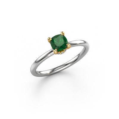 Der oben gezeigte Verlobungsring wird Crystal CUS 3 genannt. Wir nennen das einen Solitär-Ring, denn er hat einen einzelnen Edelstein. Es ist ein 14 Karat Weißgold Verlobungsring, mit 5 mm cussion Smaragd. Dieser modische Weißgold Solitär-Ring mit exquisitem, cussion Smaragd ist ein schöner Verlobungsring. Die offenen Krappen ermöglichen, dass Licht aus mehr Winkeln auf den Edelstein trifft. Der Ring besticht auch durch die hohe Positionierung des Edelsteins. Denn Smaragd symbolisieren wahre Liebe und Reinheit und machen sie damit zum perfekten Geschenk für die Liebe Ihres Lebens. Das Symbol der ewigen Liebe ist das Herzstück dieses Solitär-Rings. Wie ein Smaragd haben auch alle anderen Arten von Edelmetallen ihre eigenen, zugeschriebenen symbolischen Bedeutungen. Diese Solitär Verlobungsring können Sie selbst zusammenstellen in verschiedenen Edelmetall Kombinationen. Dieser hat die Kombination 14 Karat Weißgold mit Gold. Jedes Schmuckstück wird hergestellt von einem Team leidenschaftlicher Goldschmiede und Schmuckdesigner. Das wird Ihr Kronjuwel unbedingt zu einem Blickfang machen.Durch die Kombination modernster Technik mit uralter Handwerkskunst können wir alle Verlobungsringe in unserem eigenen Studio anfertigen. Jedes Schmuckstück wird auf Anfrage gefertigt. Das ist vorteilhaft, weil wir Ihnen dadurch einen Preis anbieten können, den Sie nirgendwo anders finden.Unsere Designer und Goldschmiede arbeiten jeden Tag zusammen und versuchen, neue Schmuckstücke zu kreieren. Vielleicht haben Sie irgendwo einen schönen, modische Verlobungsring gefunden, nach dem Ihr einzigartiger Ring gestaltet werden kann. Setzen Sie sich mit uns in Verbindung. Wir machen Ihnen ein Angebot, basierend auf einem fairen Preis/Leistungsverhältnis, das Sie begeistern wird.Um es einfacher zu machen, bieten wir eine kostenlose 30-tägige Rücksendung.