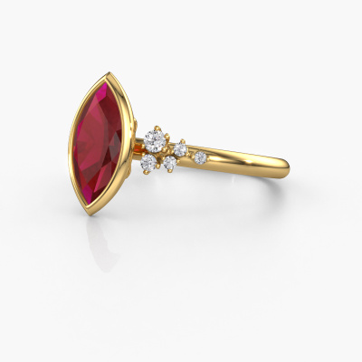Dieser Verlobungsring aus 585 Gold heißt Aliyah MRQ. Sind Sie auf der Suche nach einem trendige, Gold Verlobungsring mit Rubin 11x5.5 mm, den Sie nach Ihren Wünschen gestalten können? Dieser trendige Verlobungsring ist mit Rubin besetzt, der sorgfältig für diesen speziellen Ring ausgewählt wurde, um den besten Effekt zu erzielen. Unser erfahrener Juwelier kreiert Ihren Ring in unserem eigenen Studio eine Etage tiefer, wo der Rubin mit großer Sorgfalt eingefasst wird. Der Ring wird dann bearbeitet und poliert, bis er perfekt ist. Nichts als das Beste für die Liebe Ihres Lebens! Das Besondere an unserem Konfigurator ist dass Sie selbst einem Schmuckstück zusammenstellen können zu einem eigenen persönlichen Schmuckstück. Jedes Schmuckstück wird hergestellt von einem Team leidenschaftlicher Goldschmiede und Schmuckdesigner. Das wird Ihr Kronjuwel unbedingt zu einem Blickfang machen.. Mit unserer modernen Technik können wir Schmuckstücke von höchster Qualität mit größter Sorgfalt für Sie entwerfen und anpassen. Unsere Verlobungsringe sind immer um 30 Prozent günstiger als bei anderen Juwelieren. Wir fertigen Verlobungsringe auf Bestellung, also müssen wir keine großen Lager unterhalten. Wenn Sie ein bestimmtes Budget haben, beraten wir Sie gerne entsprechend.Unsere Designer und Goldschmiede arbeiten jeden Tag zusammen und versuchen, neue Schmuckstücke zu kreieren. Vielleicht haben Sie irgendwo einen schönen, trendige Verlobungsring gefunden, nach dem Ihr einzigartiger Ring gestaltet werden kann. Setzen Sie sich mit uns in Verbindung. Wir machen Ihnen ein Angebot, basierend auf einem fairen Preis/Leistungsverhältnis, das Sie begeistern wird.Um es einfacher zu machen, bieten wir eine kostenlose 30-tägige Rücksendung.