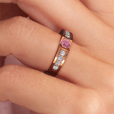 Der oben gezeigte Ring wird Lizzy 2 genannt. Es ist ein Pavé Solitär Ring, da er einen zentralen Edelstein und ein Band mit Pavé-Fassung hat. Dieser 14 Karat Roségold ring ist mit einem 4.2 mm rund Turmalin rosa-Mittelstein besetzt und das Band hat eine Pavé-Fassung mit Diamanten. Jedes Schmuckstück lässt Ihren Finger erstrahlen. Ihr Ring ist mit Liebe von unseren Goldschmieden handgefertigt.Dieser moderne Roségold Pavé Solitär Verlobungsring mit Pavé-Fassung hat einen exquisiten, rund Turmalin rosa als Mittelstein. Um den zentralen Stein noch mehr zu betonen, hat das Band eine Pavé-Fassung mit weiteren Diamanten. Durch die offenen Krappen kann das Licht aus mehreren Winkeln auf den Turmalin rosa treffen und der Turmalin rosa-Ring funkelt noch mehr. Das obere Foto zeigt die leidenschaftlich handgefertigten Details des Rings. Die hohe Positionierung der Mittelstein ist ein echter Blickfang. Der perfekte Verlobungsring für das Kronjuwel Ihres Lebens!Durch die Kombination modernster Technik mit uralter Handwerkskunst können wir alle Verlobungsringe in unserem eigenen Studio anfertigen. Jedes Schmuckstück wird auf Anfrage gefertigt. Das ist vorteilhaft, weil wir Ihnen dadurch einen Preis anbieten können, den Sie nirgendwo anders finden.Unser Team fügt unserer Online-Kollektion täglich neue Designs hinzu. Unsere Designer und Goldschmiede arbeiten zusammen, um das beste Design zu kreieren. Wir bemühen uns, eine vielfältige Kollektion von Schmuckstücken anzubieten. Vielleicht haben Sie ein bestimmtes Design im Sinn. Eines, dass Sie irgendwo gesehen haben. Gerne geben wir Ihnen eine kostenlose Beratung. Wir machen Ihnen ein Angebot, basierend auf einem fairen Preis/Leistungsverhältnis, das Sie verblüffen wird.Um es einfacher zu machen, bieten wir eine kostenlose 30-tägige Rücksendung.