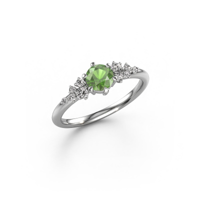 Der oben gezeigte Verlobungsring wird Royce RND genannt. Wir nennen das einen Solitär-Ring, denn er hat einen einzelnen Edelstein. Es ist ein 14 Karat Weißgold Verlobungsring, mit 5 mm rund Turmalin grün. Dieser außergewöhnliche, Vintage Weißgold Solitär-Verlobungsring mit einem schönen, rund Turmalin grün soll Ihrem Antrag ein Funkeln geben. Die offenen Krappen ermöglichen, dass Licht aus mehr Winkeln auf den Edelstein trifft. Wussten Sie, dass ein Turmalin grün für ewige Liebe und Treue steht? Das macht ihn zum perfekten Mittelstück. Unsere Goldschmiede positioniert den Edelstein Ihrer Wahl sorgfältig oben auf dem Ring. Dadurch sticht er hervor. Jedes Schmuckstück wird hergestellt von einem Team leidenschaftlicher Goldschmiede und Schmuckdesigner. Das wird Ihr Kronjuwel unbedingt zu einem Blickfang machen.Nach Erhalt Ihrer Bestellung beginnen unsere Goldschmiede mit Leidenschaft den kreativen Prozess und fertigen Ihren Verlobungsring in unserem eigenen Studio. Da wir keine großen Lager haben, werden diese Kosten nicht an Sie weitergegeben. Unsere Preisgestaltung ist der Beweis dafür! Wir bieten Schmuck zum niedrigsten Preis, garantiert.Haben Sie einen bestimmten Ring im Sinn? Eines, dass Sie irgendwo gesehen haben. Bitte zögern Sie nicht, uns zu sagen, was Sie wollen und wir werden Ihr Design in einen Einzigartigen Verlobungsring verwandeln. Sie können die Entwicklungen Ihres Ringdesigns verfolgen, da wir 3D-Zeichnungen verwenden. Das gibt Ihnen eine realistische Vorschau Ihres Designs. Wir senden Ihnen gerne ein unverbindliches Angebot zu einem fairen Preis/Leistungsverhältnis. Es wird Sie erstaunen.Um es einfacher zu machen, bieten wir eine kostenlose 30-tägige Rücksendung.