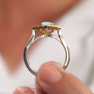 Dieser Verlobungsring aus 14 Karat Weißgold heißt Rosan und hat einen Aquamarin Edelstein. Ein außergewöhnlicher, Weißgold Vintage Ring. Einer, der die Liebe Ihres Lebens mit Sicherheit wie ein Aquamarin erstrahlen lässt! Das hoffen wir zu erreichen. Dieser Vintage Verlobungsring ist mit exquisiten Aquamarins besetzt. Welchen Edelstein Sie aus unserer Auswahl haben möchten, liegt ganz bei Ihnen. Der Edelstein wird mit großer Sorgfalt ausgewählt. Denn wir glauben, dass Ihr Verlobungsring nur mit dem schönsten Edelstein gekrönt sein darf. Sehen Sie das auch so? Unser erfahrener Juwelier entwirft Ihren Ring in unserem eigenen Studio, wo der Aquamarin mit großer Präzision eingefasst wird. Der Ring wird dann bearbeitet und poliert, bis er perfekt ist. Nichts als das Beste für die Liebe Ihres Lebens! Jedes Schmuckstück wird von unseren Meister-Goldschmieden in unserem eigenen Studio für Sie gefertigt.Nach Erhalt Ihrer Bestellung beginnen unsere Goldschmiede mit Leidenschaft den kreativen Prozess und fertigen Ihren Verlobungsring in unserem eigenen Studio. Da wir keine großen Lager haben, werden diese Kosten nicht an Sie weitergegeben. Unsere Preisgestaltung ist der Beweis dafür! Wir bieten Schmuck zum niedrigsten Preis, garantiert.Unser Team fügt unserer Online-Kollektion täglich neue Designs hinzu. Unsere Designer und Goldschmiede arbeiten zusammen, um das beste Design zu kreieren. Wir bemühen uns, eine vielfältige Kollektion von Schmuckstücken anzubieten. Vielleicht haben Sie ein bestimmtes Design im Sinn. Eines, dass Sie irgendwo gesehen haben. Gerne geben wir Ihnen eine kostenlose Beratung. Wir machen Ihnen ein Angebot, basierend auf einem fairen Preis/Leistungsverhältnis, das Sie verblüffen wird.Um es einfacher zu machen, bieten wir eine kostenlose 30-tägige Rücksendung.