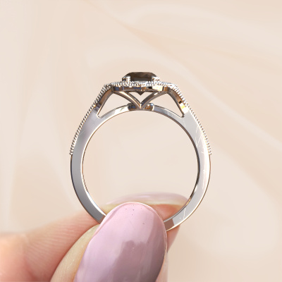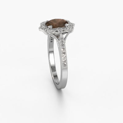 Dieser Verlobungsring aus 14 Karat Weißgold heißt Loni. Dieser filigrane Weißgold Verlobungsring mit 7,5x5,5 mm Rauchquarz ist ein wahres Kunstwerk! Ein wunderschön geschmücktes Design aus komplizierten Drähten. Mit Hingabe, Geduld und äußerster Präzision werden unsere erfahrenen Juweliere einen Ring nur für Sie entwerfen. Die Verzierungen mit kleinen Drähten werden von Hand in Perfektion gefertigt. Das ist ein langwieriger Prozess, der Schweißen, Werkzeug und Polieren umfasst, bis der erfahrene Juwelier mit dem Ergebnis zufrieden ist: Ein perfekter, auffälliger Ring, der ihn mit Freude zum Strahlen bringt. Deshalb ist der Vintage, filigrane Verlobungsring ein außergewöhnliches Geschenk, um die Liebe Ihres Lebens zu verwöhnen. Ein handgemachter, einzigartiger und personalisierter Ring, den man jemandem in diesem besonderen Moment geben kann, wenn man die eine Frage stellt. Ist das nicht wunderbar? Jedes Schmuckstück wird hergestellt mit Leidenschaft und Liebe, von einem unserer Meister-Goldschmiede.Da wir unsere eigenen Ringe entwerfen und liefern, können wir Ihnen einen Verlobungsring zu einem Preis anbieten, den Sie nirgendwo anders finden. Ein Ring wird auf Bestellung angefertigt, wodurch kein überschüssiges Material anfällt. So können wir Ihnen ein gutes Angebot zum besten Preis machen. Wir verstehen, dass es sich riskant anfühlt, Ihren Verlobungsring online zu kaufen. Jedoch helfen wir Ihnen gerne beim Designprozess unter Berücksichtigung Ihres Budgets.Unser Team fügt unserer Online-Kollektion täglich neue Designs hinzu. Unsere Designer und Goldschmiede arbeiten zusammen, um das beste Design zu kreieren. Wir bemühen uns, eine vielfältige Kollektion von Schmuckstücken anzubieten. Vielleicht haben Sie ein bestimmtes Design im Sinn. Eines, dass Sie irgendwo gesehen haben. Gerne geben wir Ihnen eine kostenlose Beratung. Wir machen Ihnen ein Angebot, basierend auf einem fairen Preis/Leistungsverhältnis, das Sie verblüffen wird.Um es einfacher zu machen, bieten wir eine kostenlose 30-tägige Rücksendung.